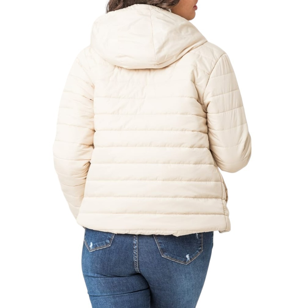 Jaqueta Feminina Nylon Bege Com Capuz e Zíper Zune